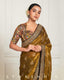 - Dark Gold Glossy Organza saree Embellished With Black Velvet Border And Golden Tassel Detailing's/Black Velvet Embroidered Blouse Embellished With Golden Zari And Sequins Work,Adding Black And Golden Border And Beads.