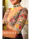 - Multicolor Floral Thread s Embroidery On Red Georgette Blouse With Dangling Golden Beads. Elbow Sleeve With V-Shaped Back